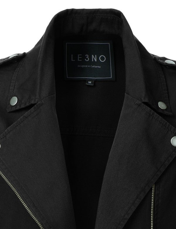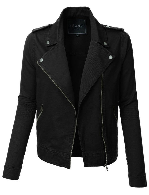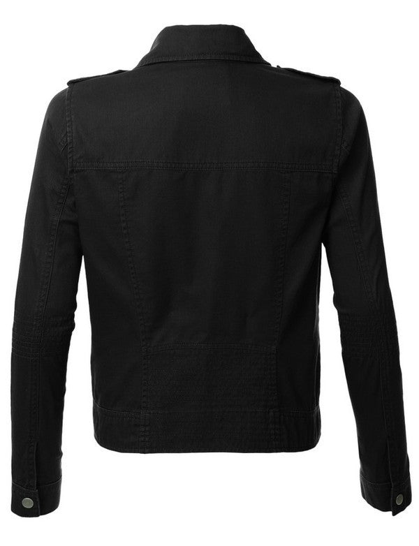 Cropped Long Sleeve Zip Up Moto Military Jacket